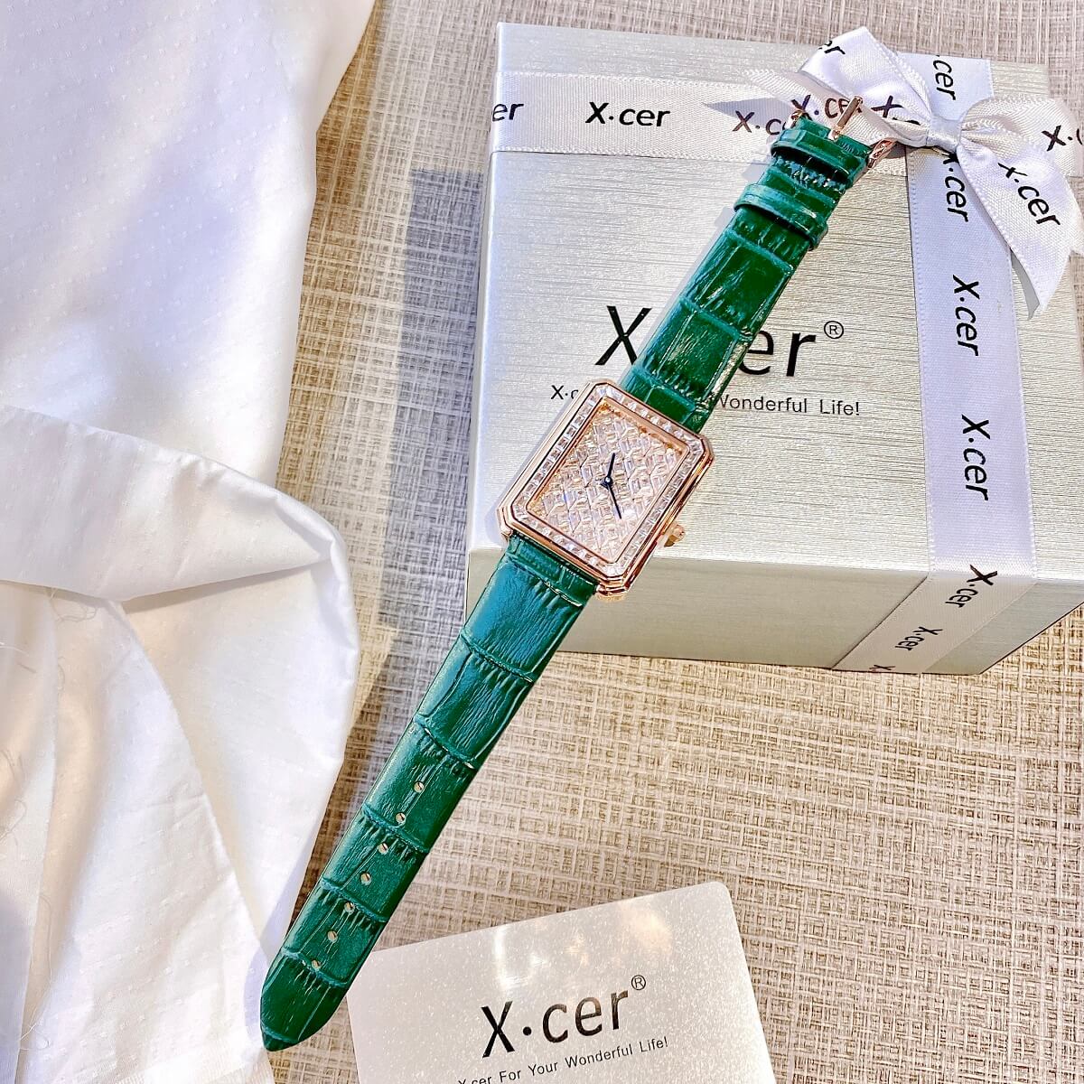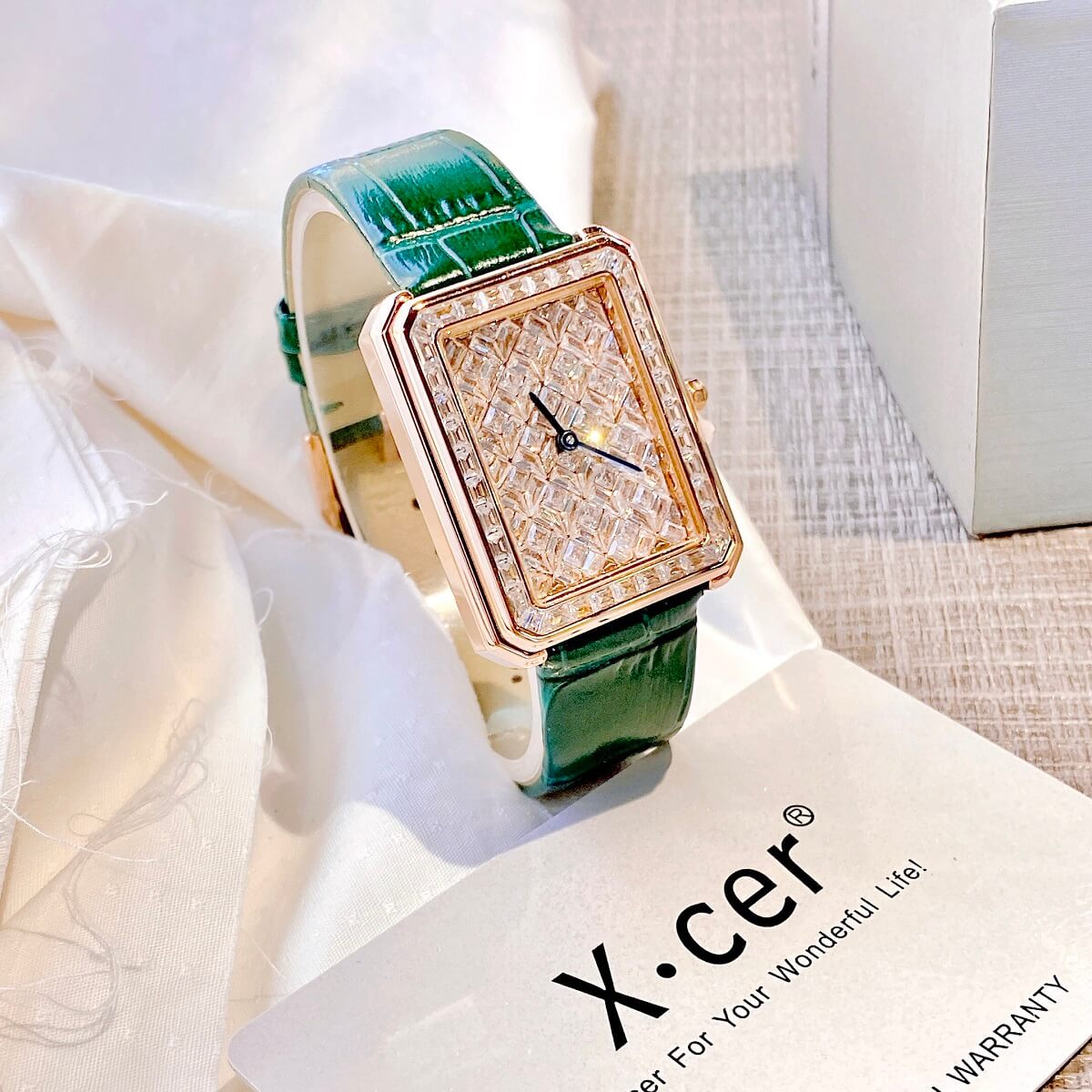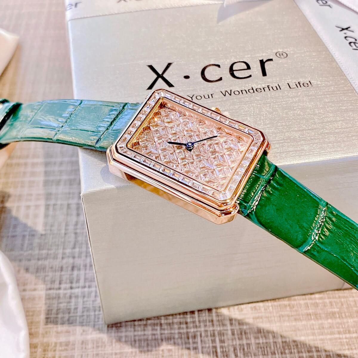 Đồng Hồ Nữ X-cer B0642 Dây Da Green Rose 34mm chính hãng máy Nhật - Phong cách của những quý cô ghiền kim cương