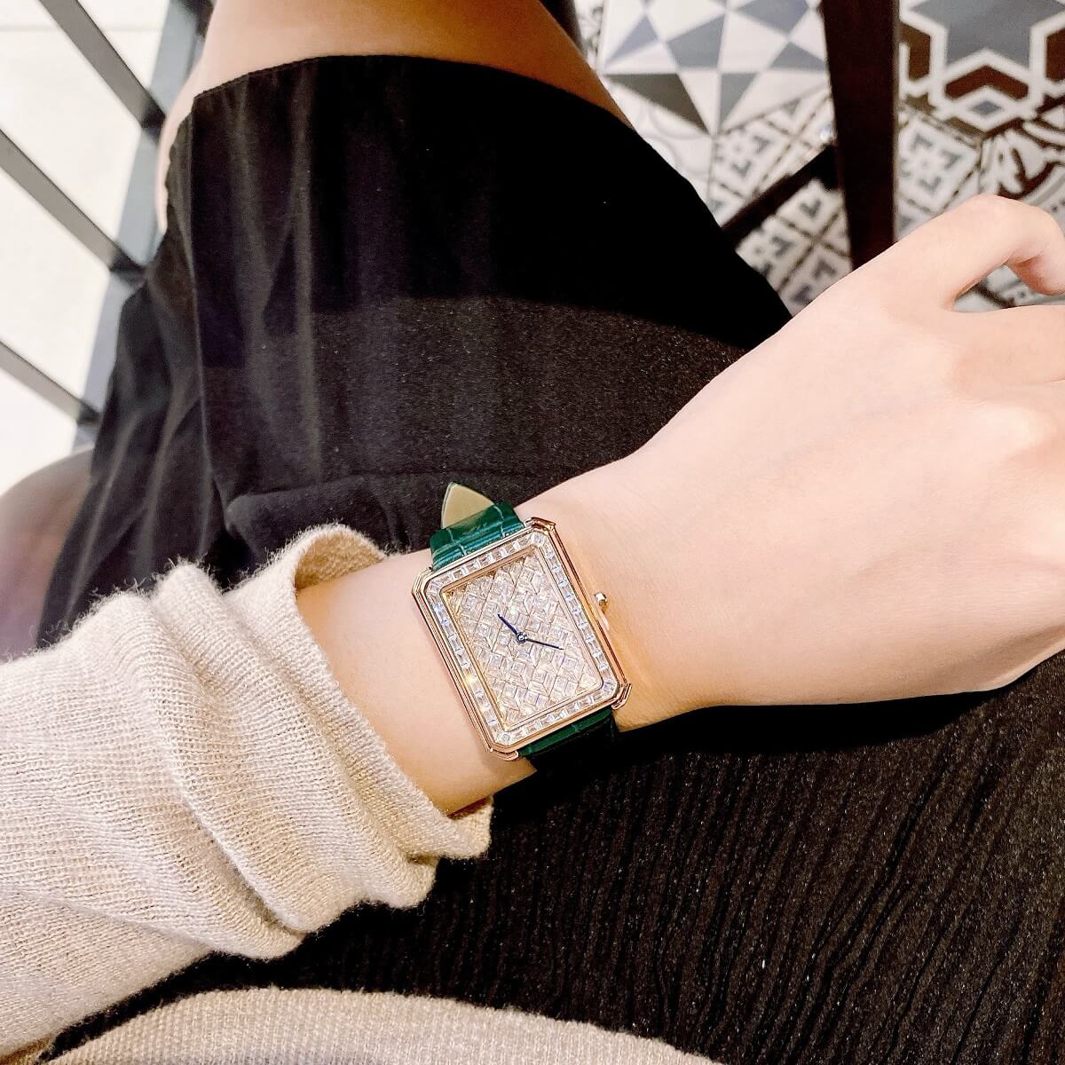 Công nghệ gắn đá chuẩn tiêu chuẩn quốc tế nên sản phẩm lên tay sang chảnh như Chanel. Dây da mềm mại đẹp ôm tay tôn da phái đẹp