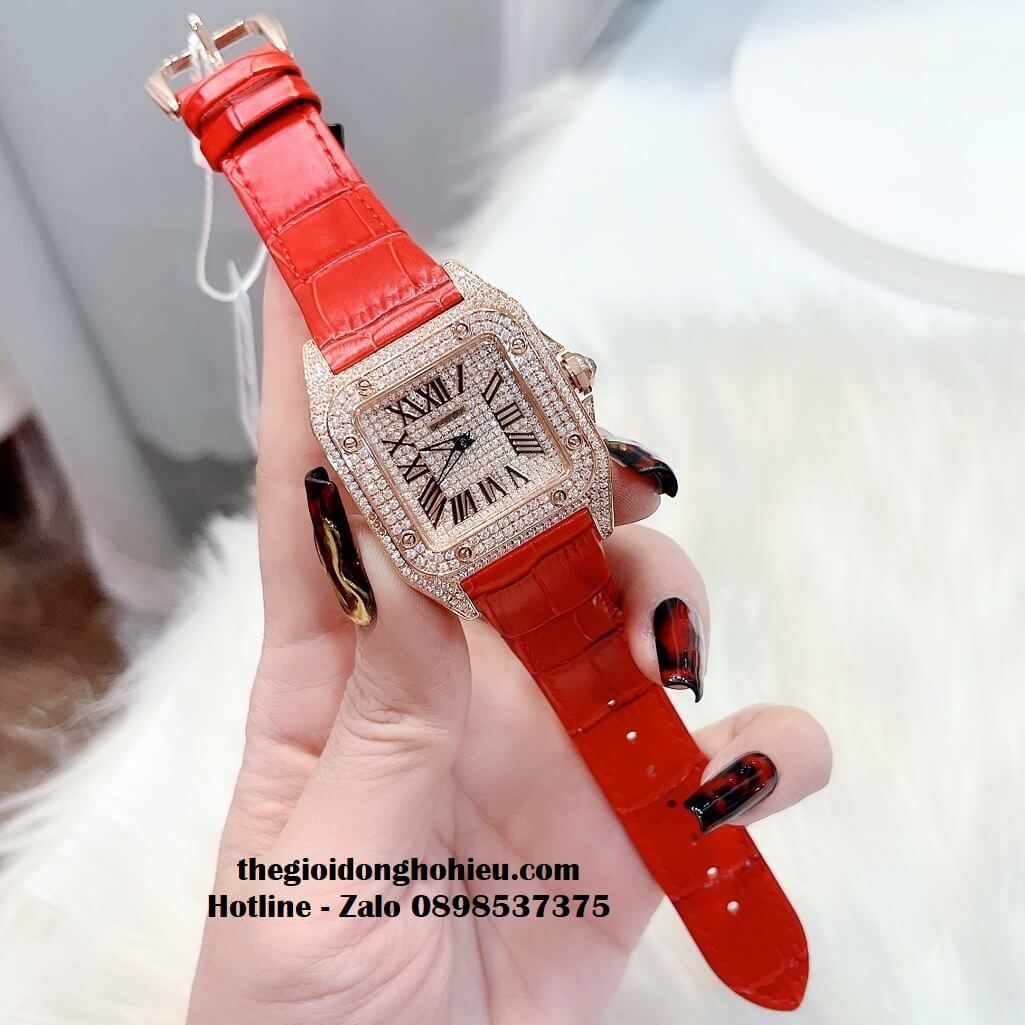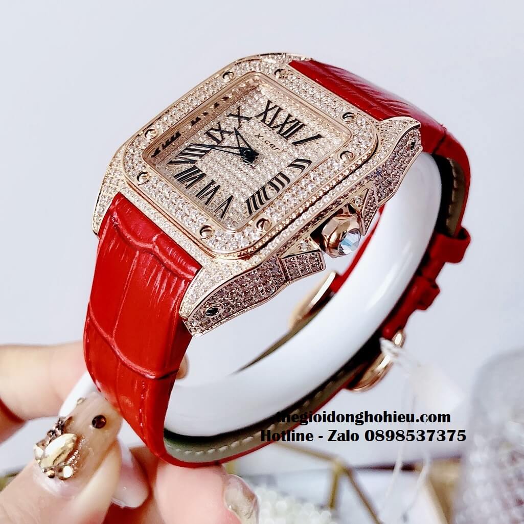 Đồng Hồ Nữ X-cer Dây Da Đỏ Mặt Vuông Vỏ Rose B0593