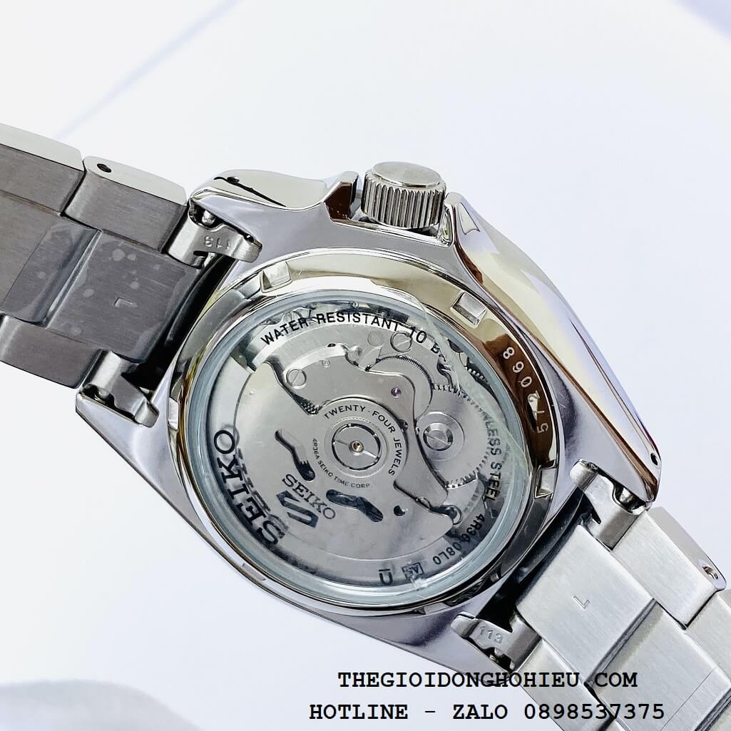 Cỗ máy Seiko 4R36 lên cót bằng tay, trữ cót đến 41H. Có độ chính xác cao và bền bỉ.