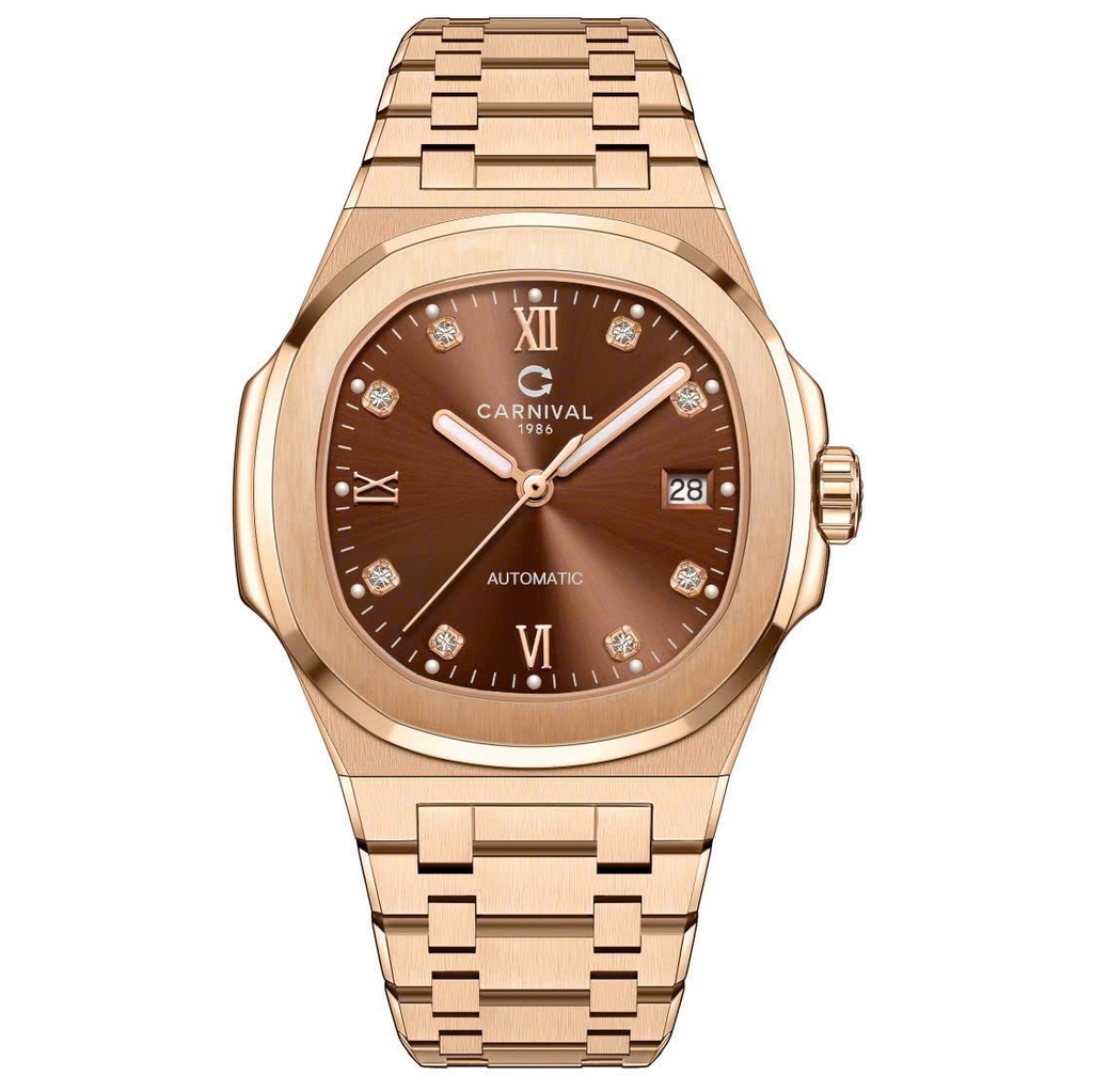 Hình ảnh Đồng hồ Carnival nam chính hãng màu vàng hồng mặt nâu