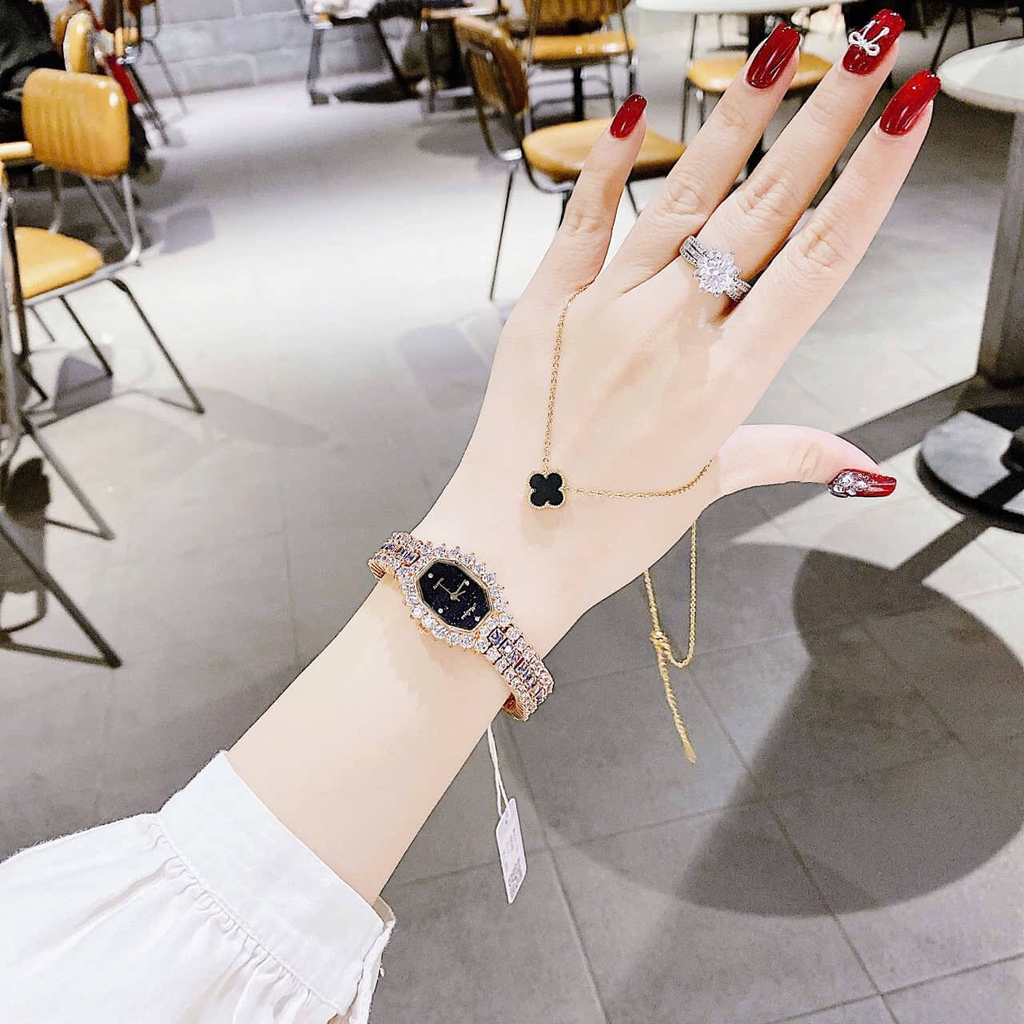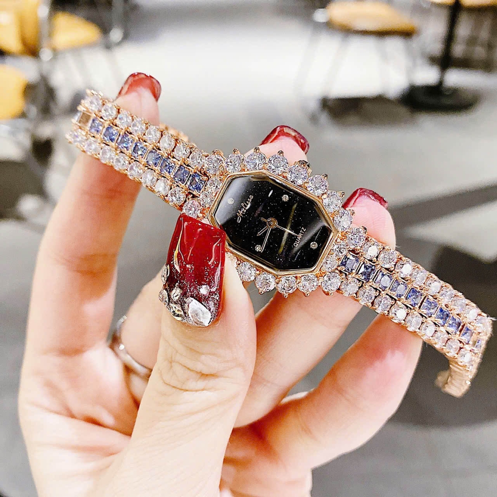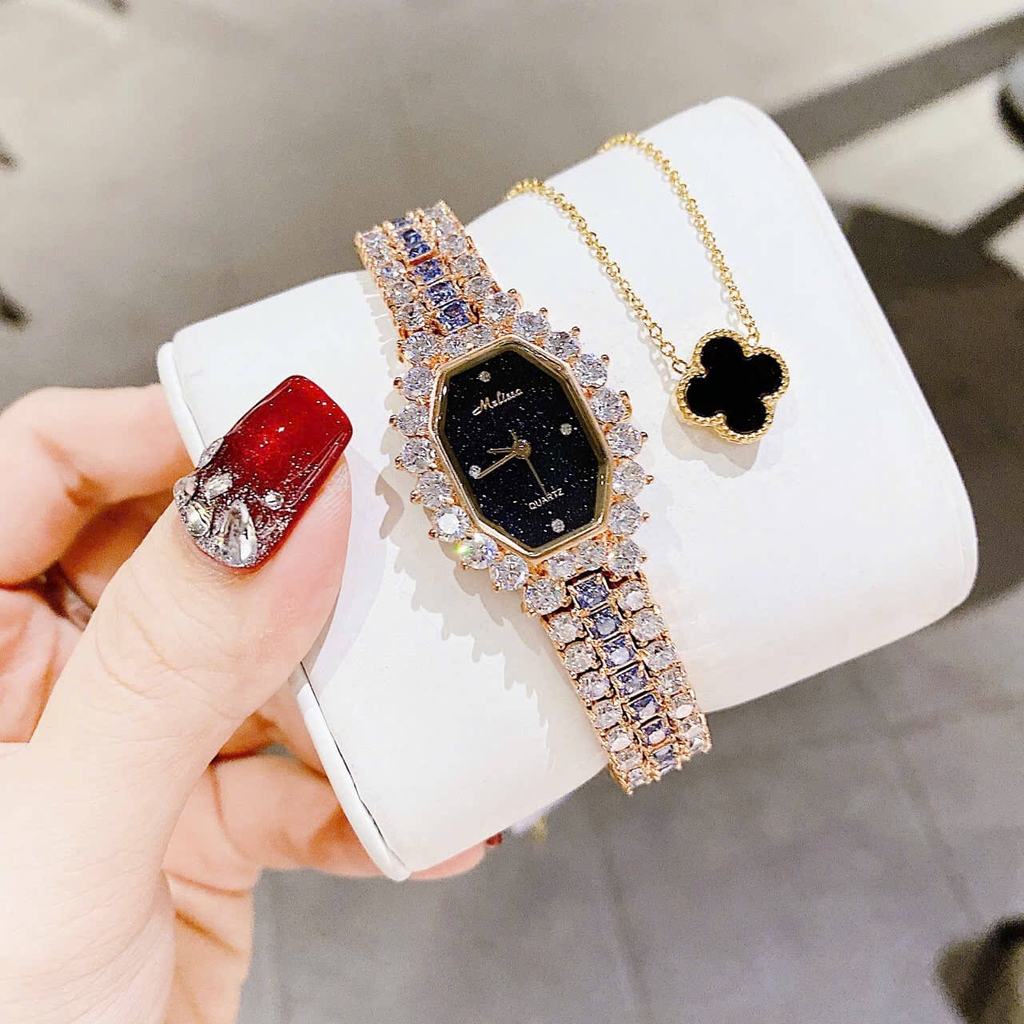 Set Đồng Hồ Nữ Melissa F8240 Chính Hãng Dây Lắc Tay Đính Đá Xanh Kèm Dây Chuyền